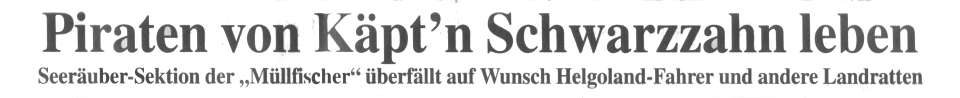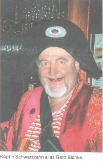 Von unserem Redaktionsmitglied Kirsten Schack Helgoland / Bremerhaven. Die Sonne scheint, die Seehunde balgen sich am Meer, die Urlauber flanieren über die Insel und am Abend geht´s zurück an Bord zum ausgiebigen Dinner - Helgoland, da kann man sich wohl fühlen. Oder? Fatal, fatal, wenn man sich auf einer Insel sicher wähnt, die einst von Piraten heimgesucht wurde. Nie, aber auch nie sollte man glauben, dass die Spezies um Störtebeker in deutschen Gefilden wirklich ganz und gar ausgestorben ist. Denn während unschuldige Urlauber noch auf dem Schiff beieinander sitzen, plaudern und Schnittchen vertilgen, stürzen plötzlich acht Seeräuber an Bord. Messer und Säbel schießen empor. "Jetzt mal schön die Flossen hoch", grölt eine Stimme. Nicht irgendeine, sondern die von Käpt´n Schwarzzahn, dem blutrünstigsten Piraten aller sieben Weltmeere. Käpt´n Schwarzzahn ist eigentlich Gerd Blanke und dürfte zumindest den Bremerhavenern von den Auftritten der Kabarettgruppe |