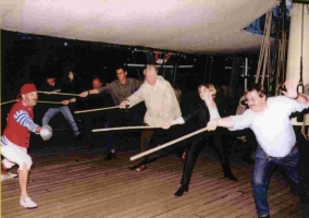 | Ein wüster Haufen Piraten... | ...überfällt heimtückisch Ihre ahnungslosen Gäste,... |